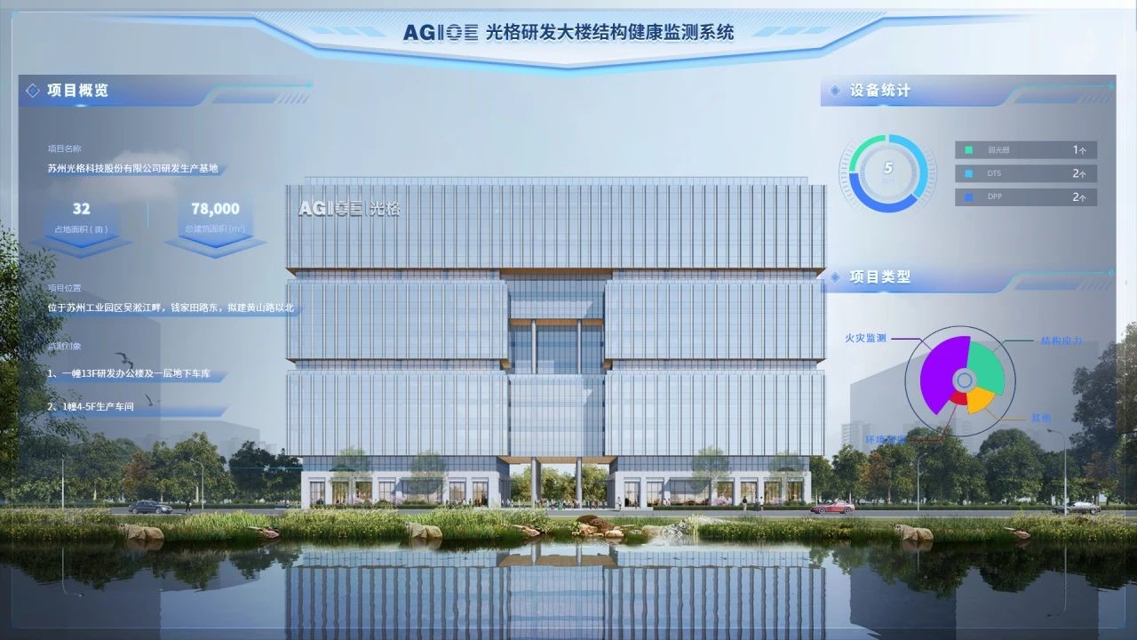 光格科技的分布式光纖傳感技術(shù)產(chǎn)品在光格總部大樓的建設中得到了部署,未來(lái),通過(guò)遍布大樓的光纖傳感網(wǎng)絡(luò ),系統能夠實(shí)時(shí)捕捉并分析建筑結構的應變和溫度變化。這一技術(shù)不僅為大樓的結構健康提供了實(shí)時(shí)監測,還能夠有效檢測火災等隱患,并實(shí)現智能溫度調控。