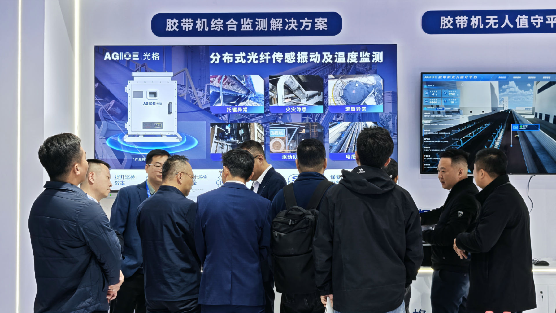 作為煤礦智能化領(lǐng)域的創(chuàng )新代表,光格科技攜最新“膠帶機無(wú)人巡檢解決方案”重磅亮相首都國際會(huì )展中心B5館B5202展臺,展示了公司在分布式光纖傳感、人工智能物聯(lián)網(wǎng)(AIoT)與故障預測健康管理(PHM)等前沿技術(shù)領(lǐng)域的成果在煤礦運輸場(chǎng)景下的應用。展臺人流涌動(dòng)、交流熱烈,吸引了眾多煤礦集團、設計院專(zhuān)家、科研院代表及行業(yè)代表到訪(fǎng)洽談。